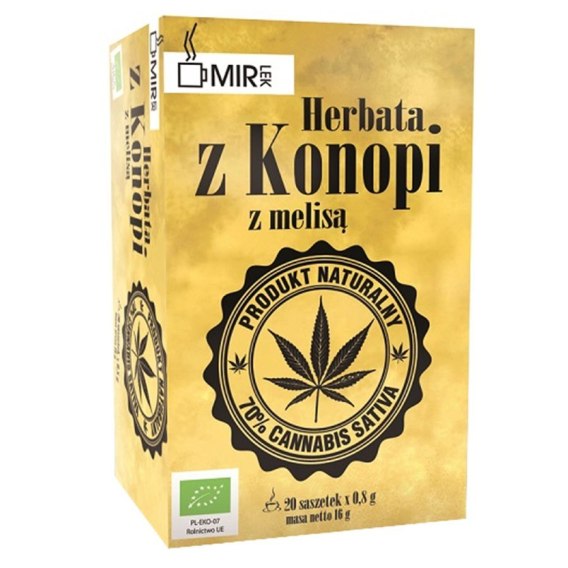 Herbata z konopii z melisą Mir-lek BIO to nowość na polskim rynku. Jej skład to 70% ziela konopii siewnej oraz 30% melisy z ekologicznych upraw, znajdujących się na terenie Republice Czeskiej (certyfikat BIO). W odróżnieniu od konopi indyjskich, konopie siewne charakteryzują się bardzo niską zawartością THC (poniżej 0,2% w przeliczeniu na suchą masę). Produkt może być spożywany przez wegetarian i wegan, w swoim składzie nie ma również glutenu. Uwagę zwraca łatwość przygotowania herbaty z konopii z melisą Mir-lek BIO - wystarczy zalać torebkę wrzącą wodą i odczekać dwie minuty