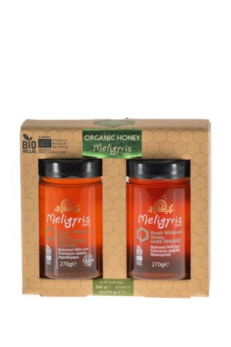 Zbierany późną wiosną do wczesnego lata, miód ze słynnego, dzikiego, górskiego tymianku kwitnącego w wysokich rejonach górzystej Krety.Ma silny smak i bursztynową barwę. Szeroko stosowany do zwalczania infekcji. Działa antybakteryjnie, przeciwutleniająco i antyseptycznie, jest naturalnym wzmocnieniem ludzkiego organizmu. Doskonale smakuje z jogurtem, orzechami, tostami maślanymi, serem feta i kozim serem. Miód tymiankowy Meligyris został wyróżniony w międzynarodowym konkursie "Great Taste Awards 2014" zorganizowanym w Londynie przez Guild of Fine Food. Spośród 10 tys. produktów tylko 124 zostały nagrodzone, a wśród nich dwa wyjątkowe miody: miód tymiankowy oraz organiczny miód leśny z tymiankiem i dzikimi ziołami. To bardzo ważne wyróżnienie, gdyż przyznane przez ponad 400 koneserów smaku uczestniczących w tym konkursie. Ekologiczny, lekki miód z szałwii kwitnącej na wiosnę w kreteńskich lasach. Ma mocny aromat, zachwycający, ale łagodny smak i elegancki, kwiatowy posmak. Mocno odżywczy, polecany jako słodzik do lemoniad czy herbat ziołowych. Świetny z twardymi serami Graviera, Pecorino i Parmezanem. Przechowywać w chłodnym i ciemnym miejscu. Producent: Meligyris