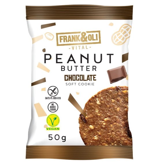 Wegańskie bezglutenowe ciastko z pastą orzechową i czekoladą Frank&Oli, 50g